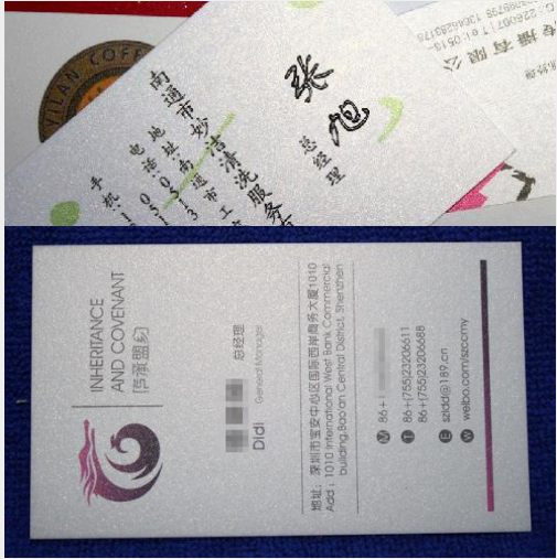 細節(jié)備注:如果您的名片墨地比較大建議選擇覆膜工藝